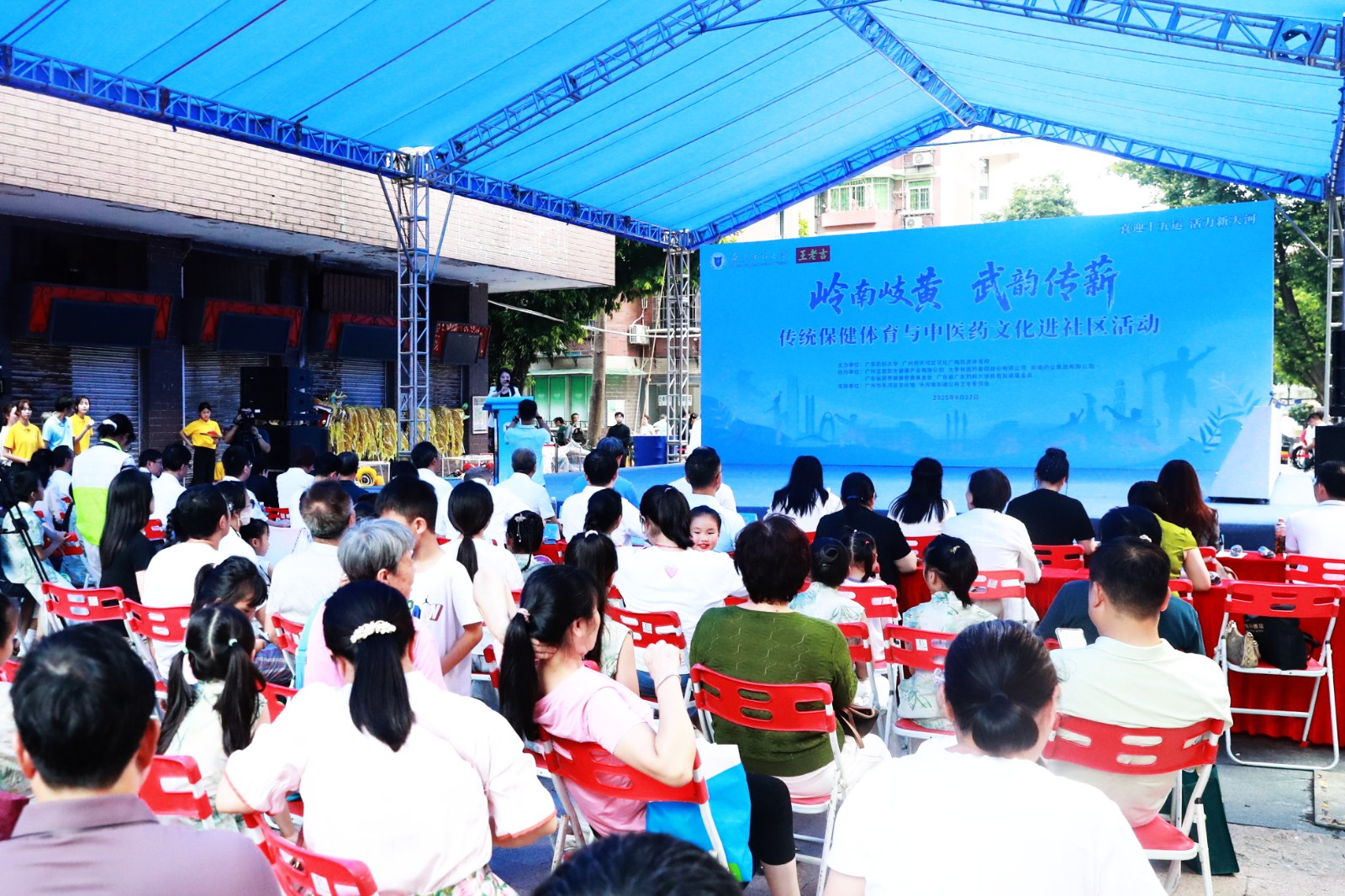 近日,一场热闹非凡的“岭南岐黄,武韵传薪”传统保健体育与中医药文化进社区活动在广州市天河区六运小区精彩上演,吸引周边街坊和游客纷纷驻足观赏、深度体验。广东药科大学校长翟理祥、全国政协人口资源环境委员会办公室(四局)原一级巡视员闫卫东、广州市天河区文化广电旅游体育局局长江波等出席了本次活动。天河区外国语学校、清华附中湾区学校、广州市第十八中学、体育东路小学、天英小学等6所中小学负责人,学校党政办、体育部、团委、宣传部、学工部、中药学院负责人等参加了活动。