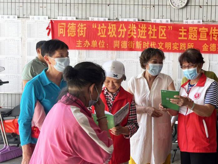近日,广州市白云区同德街金德苑社区开展“垃圾分类进社区”宣传活动,积极引导辖区居民牢固树立垃圾分类意识,营造绿色环保的社区氛围。