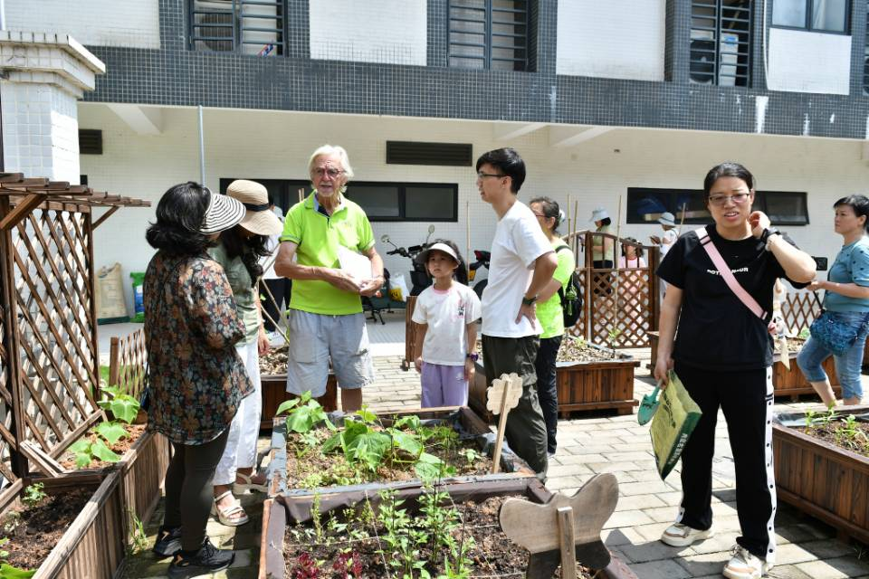 记者了解到,这个社区花园原本只是居委会后院一块闲置水泥地,如今摇身一变成为社区中外邻里共享花园。祈福新邨社区中外邻里共享花园的建成,源于一场中外“邻聚力”议事会的头脑风暴。