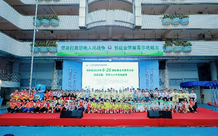 6月20日下午,在第38个国际禁毒日来临之际,广州市海珠区禁毒委联合区公安分局主办,省禁毒科普馆、市禁毒基金会、区教育局等20余家单位协办,以“政府主导、部门协同、社会参与”的模式,在广州市海珠工艺美术职业学校举办“6・26”国际禁毒日主题宣传活动。活动以“防范青少年药物滥用”为主题,通过舞台展演、成果展示、游戏体验、互动问答等多元形式,集中展示海珠区禁毒示范创建成效,全面动员社会各界参与新时代禁毒人民战争。