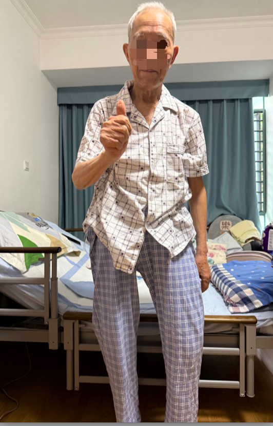手术顺利完成,术后该院多学科团队在精细化疼痛管理、个体化营养支持和循序渐进的早期康复活动等方面,为廖伯制定了加速康复计划——术后6小时,廖伯在医护人员指导下自主咳嗽排痰,进行呼吸训练;术后第二天,廖伯肺炎症状明显改善,能坐起身进食;术后第五天,老人家脱离吸氧,血红蛋白稳步回升;术后第七天,廖伯扶着助行器成功站起来了……