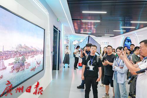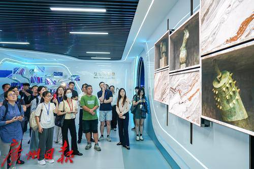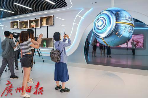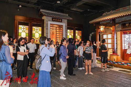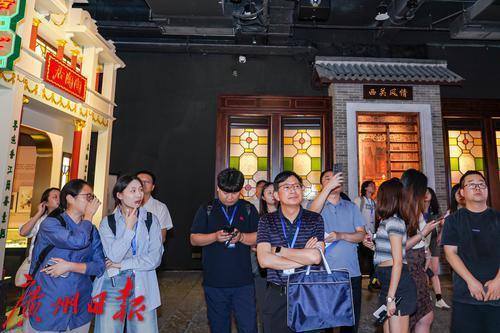 媒体记者团走进励丰文化科技股份有限公司,在复刻广州非遗街区的展厅内参观。
