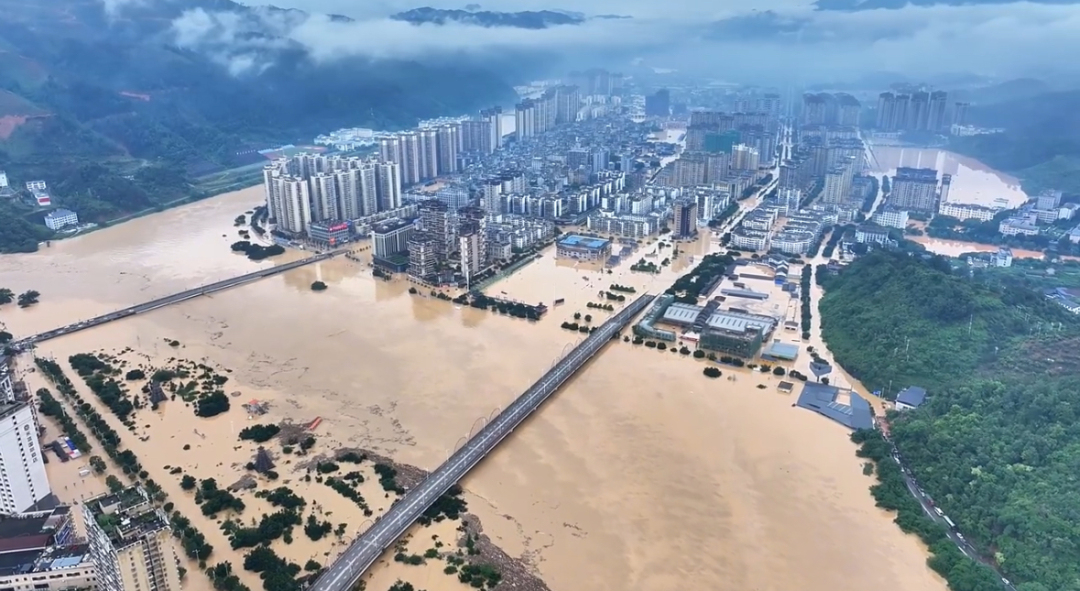6月24日,受持续强降雨及上游来水叠加影响,贵州省黔东南州榕江县境内平永河、寨蒿河、都柳江水位持续快速上涨,遭遇特大洪水,县城多处低洼地带被淹。