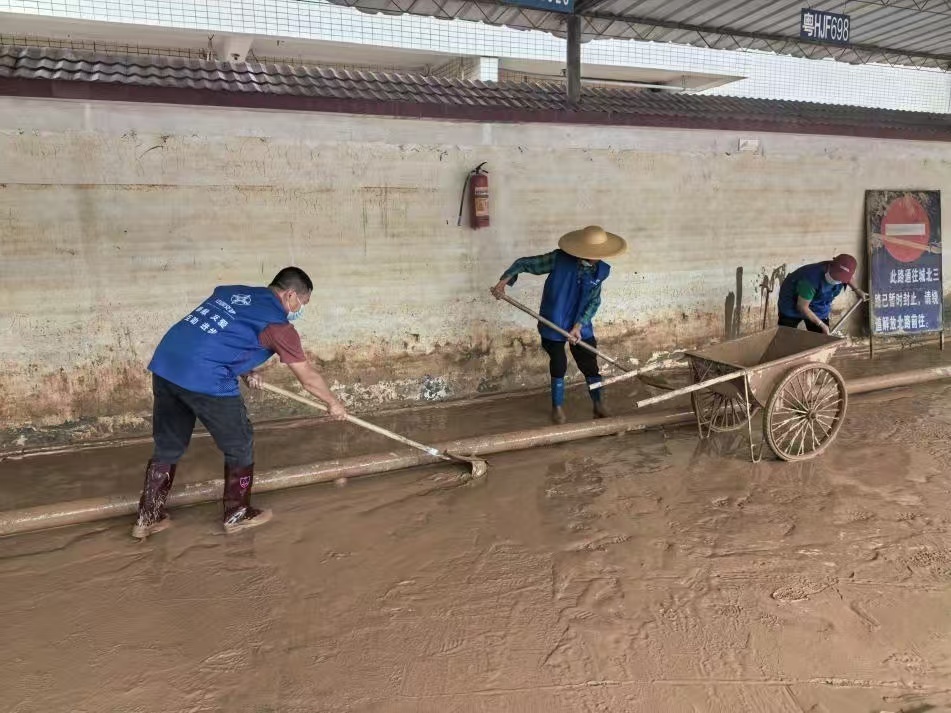 6月20日傍晚,该组抢险突击队已经完成了对肇庆怀集县公路局院内所有淤泥的清理。
