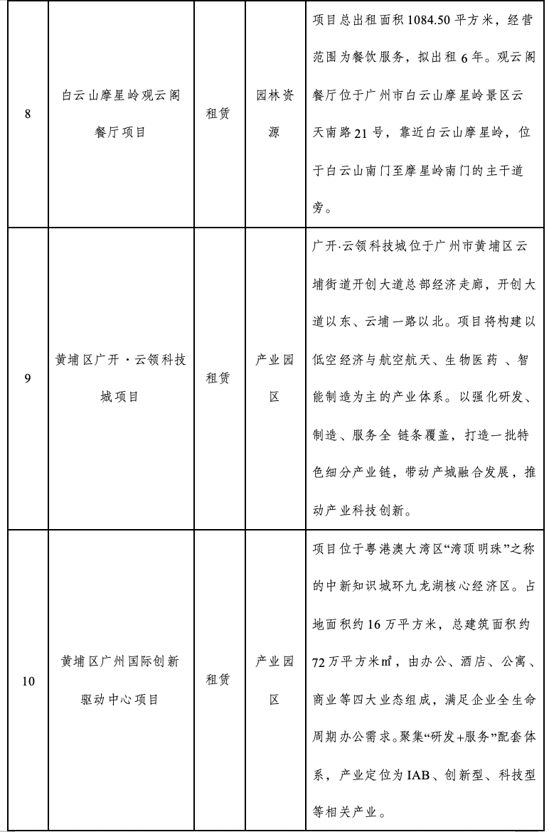 其中,广州南站核心区释放超8万平方米优质地块,着力升级网约车充电与停车接驳功能,以完善配套深度释放枢纽经济活力;黄埔云领科技城锚定低空经济与航空航天产业前沿,全力打造集研发、制造于一体的全链条产业基地,加速推动高端产业集群化发展;白云山叹花楼片区依托得天独厚的自然景观,创新构建融合游乐、餐饮与艺术氛围的山麓艺术体验区,匠心打造引领潮流的新文旅消费场景;少年宫剧院活化运营项目则通过对城市文化空间的焕新升级,为市民提供更加丰富多元的精神文化生活选择。