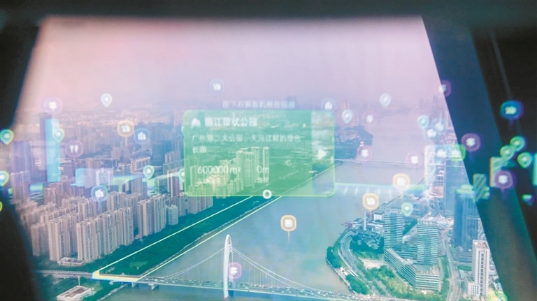 游客透过广州塔顶层的MR望远镜,不仅能看到广州美景,还能了解各个地标建筑的具体信息。