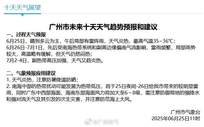 今日(25日)南沙继续高温