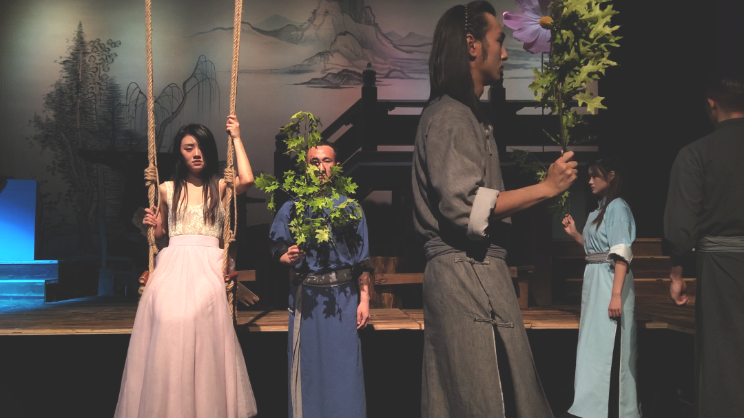 观众不再是旁观者,而成为这场时空实验的“在场”见证人。当演员李卿瑜饰演的慕容英在“千里寻夫”的碎片化叙事中辗转,她每一个抉择的痛楚与坚毅都穿透幕布,直抵人心。广东轻工职业技术大学的张老师说:“我非常喜欢‘千里寻夫’这一场的叙述,所呈现的方式有《木兰辞》的叙述特点,带有强烈的文学性,如诗一般令我着迷。在剧作中能看到这样的呈现方式真的太惊喜了。”