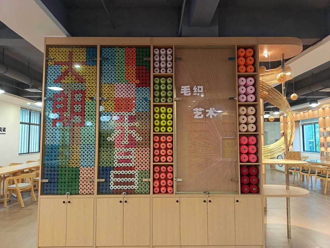踏入产业中心一楼北欧风咖啡屋内,大朗毛织线编织的荔枝树象征“励志”,超大屏幕播放北乡发展故事,搭配糍粑、腊味等特色美食。300平方米的风度书房智慧满满,自助借阅、多龄段分区,1.5万册藏书融合大朗纺织、篮球文化。