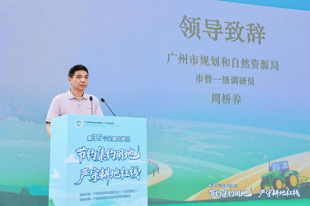 市规划和自然资源局市管一级调研员周桥养在致辞中表示,近年来广州坚定不移推进节约集约用地,毫不动摇抓好耕地保护,为全市高质量发展提供了坚实的资源要素保障,守牢了粮食安全底线。我们要将“节约集约用地 严守耕地红线”转化为行动自觉,奋力营造出全社会共同保护耕地和节约集约用地的良好局面。