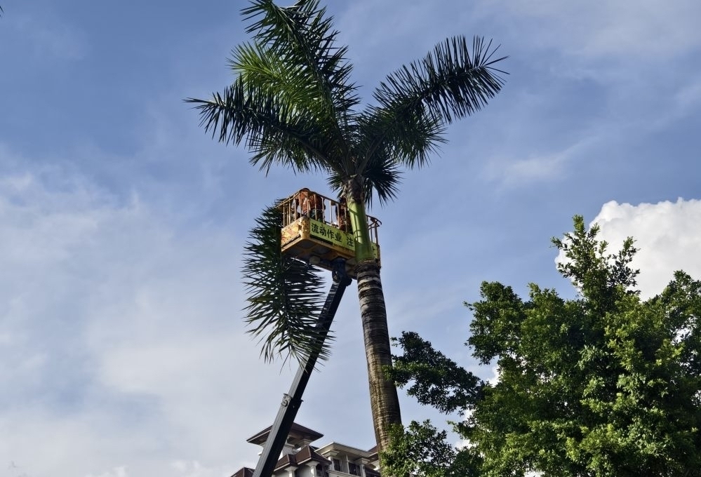 大王椰树作为行道树,树干笔直高大,景观效果良好,但由于树木高大,叶鞘、叶羽也比较大,如得不到及时修剪,树叶从树干上剥离掉落下来,很容易伤到行人和车辆。