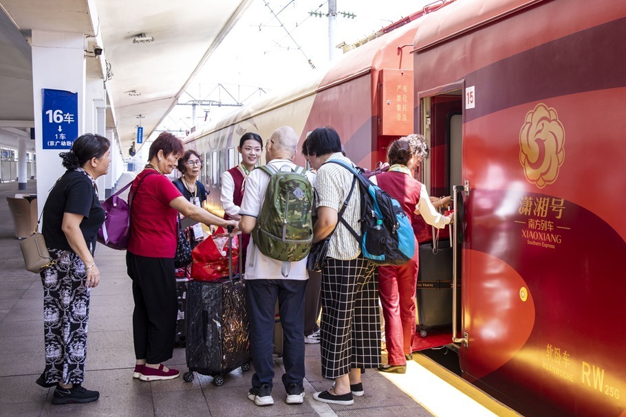 据了解,这趟“潇湘号”的首批乘客中,60岁以上长者占了约65%,其中近一半来自粤港澳大湾区。这趟专列是广铁集团促进银发旅游消费的一次生动实践,让“诗与远方”对老年朋友来说不再遥远。