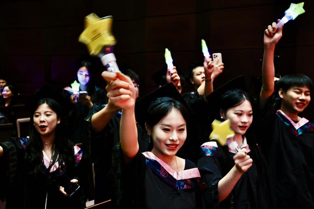 星海音乐学院党委书记邓国安号召全场师生,将饱含未来希望与师长嘱托的纸飞机共同放飞,带着母校的希望,2025届毕业生们即将向着辽阔的未来振翅翱翔!