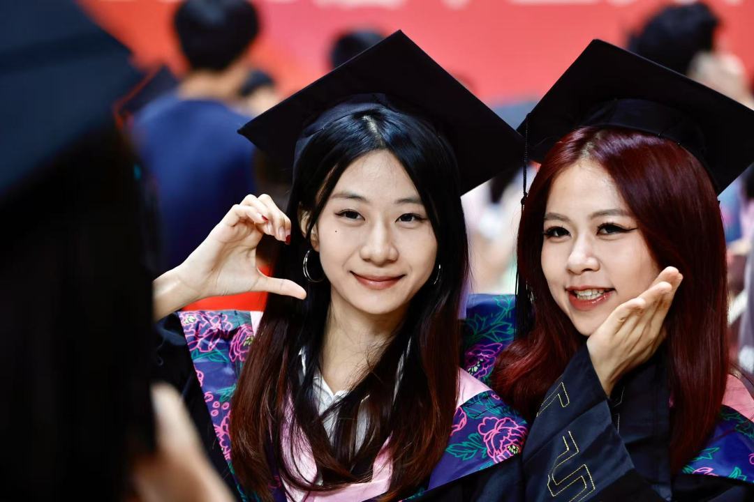 典礼仪式在精彩的暖场表演中拉开帷幕。一段精心制作的视频,回望2025届学子从入学到毕业的青春足迹,唤起无尽温馨回忆。舞蹈学院学子以一场民族民间舞大联欢《锦绣中华》献礼,翩跹舞姿如诗如画,尽显大美中华的壮丽山河。知名校友的祝福视频惊喜而至,真挚寄语点燃全场热情。