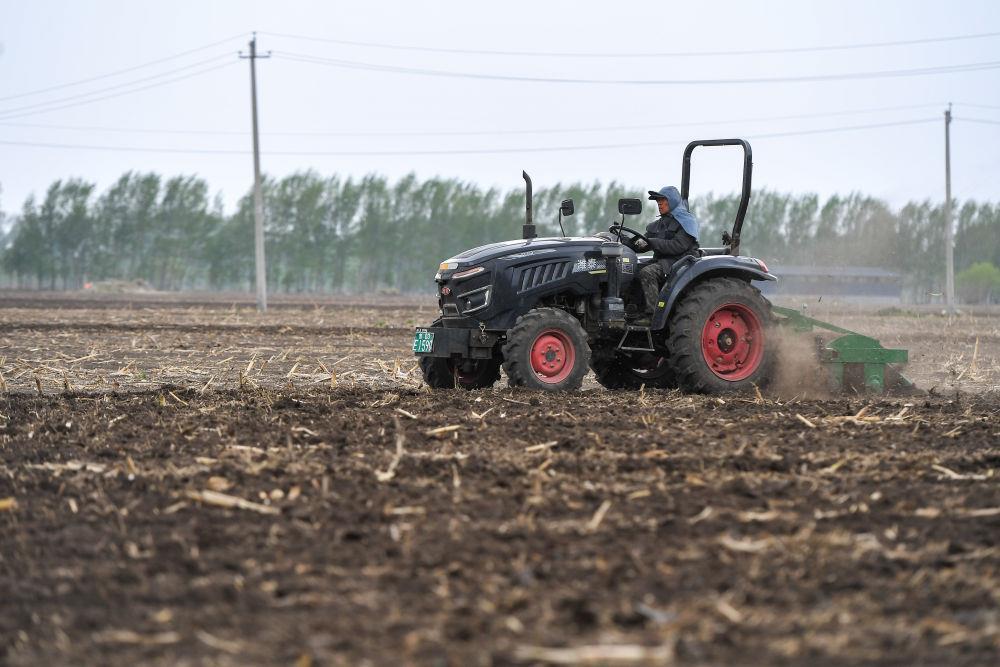 △2025年5月,在吉林公主岭陶家屯镇马家店村,农民驾驶旋耕机为播种做准备。