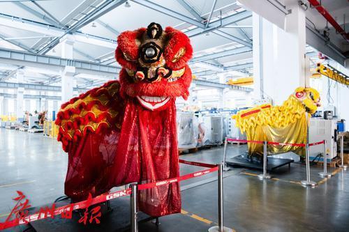 6月24日,广州数控工业机器人生产线入口的机器人醒狮引人注目。