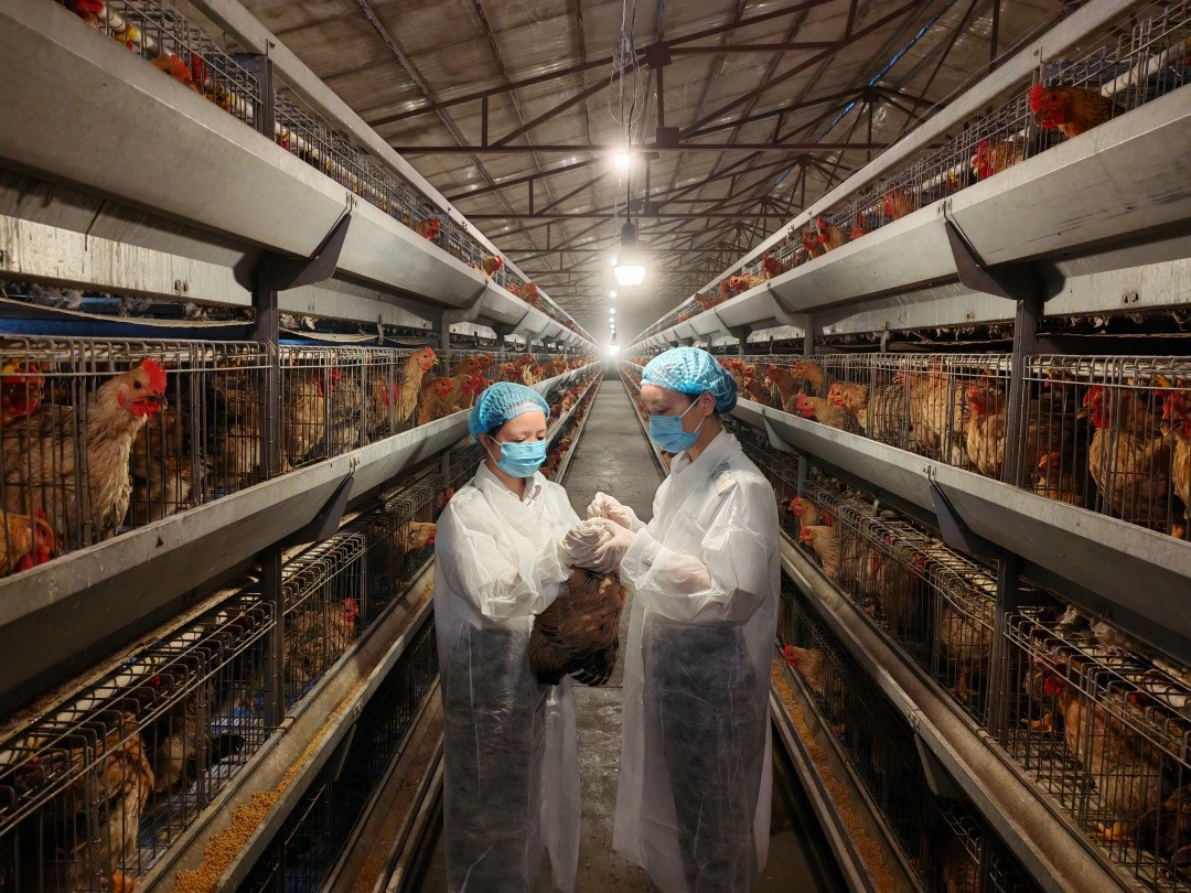 广州海关所属河源海关关员在供港禽类备案养殖场开展监管。
