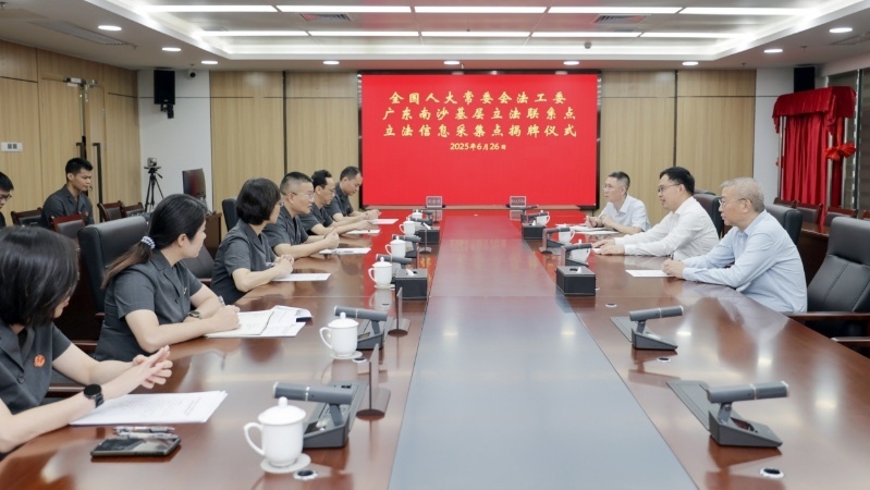 6月26日上午,全国人大常委会法工委广东南沙基层立法联系点立法信息采集点在广州市南沙区人民法院涉外和商事审判中心揭牌,南沙区人大常委会与南沙法院现场签署《关于加强基层立法联系点建设的备忘录》(以下简称《备忘录》),两家单位主要负责同志出席活动。