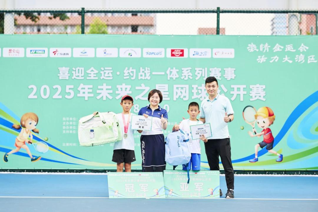 日前,喜迎全运・约战一体系列赛事2025年未来之星网球公开赛在广州开发区第一体育中心网球场圆满落幕。40余名U8、U10年龄段的网球少年上演74场精彩对决。最终,黄宝林斩获U8组别混合单打冠军,卢文辉摘得U10组别桂冠,为这场兼具竞技激情与成长故事的赛事画上圆满句号。