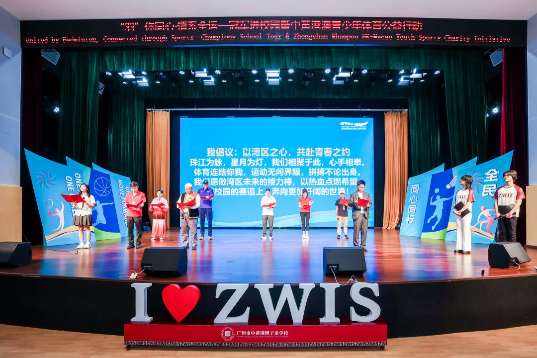 活动现场,体育冠军、广州好人与师生一起宣读倡议。
