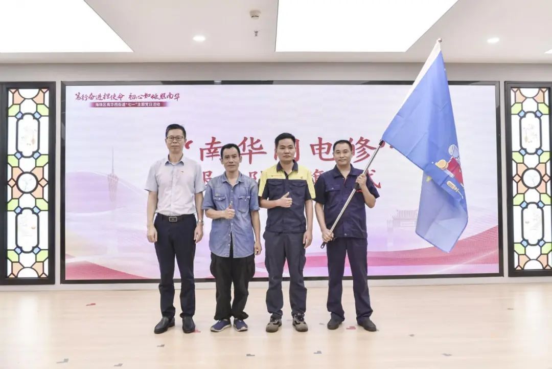活动不仅聚焦精神传承,更亮出了南华西街道以党建为引领,探索基层治理现代化的新举措。活动现场,一支崭新的便民服务力量——“南华闪电修”服务队接过队旗,宣布正式成立。这支由街道党工委统筹协调、辖区物业企业联合打造的便民服务队,以“快速响应、高效服务、奉献社会”为宗旨,为居民提供及时、可靠的家电维修等便民服务,让群众身边的“烦心事”得到“闪电”解决。