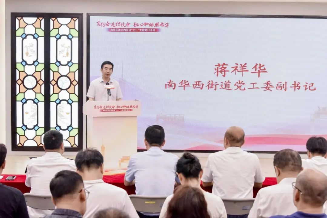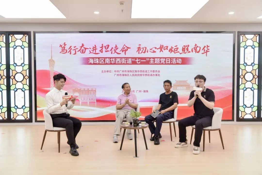 为筑牢党员干部理想信念根基,6月26日,海珠区南华西街道党工委、办事处举办“笃行奋进担使命 初心如炬照南华”七一主题党日活动。活动以一场跨越老中青三代党员的初心对话为核心,通过致敬荣光、榜样传承、治理创新、文化聚力四大篇章,立体展现街道党员干部的昂扬风貌与时代担当,奏响党群同心、共筑幸福家园的嘹亮乐章。