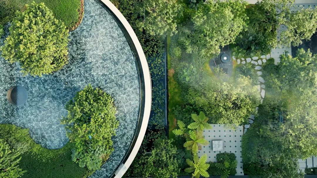 佛山万科·世纪灯湖瑧府的岭南园林。