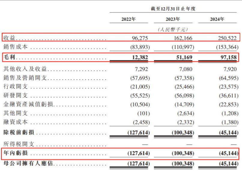招股书显示,2022年至2024年,斯坦德营收从0.96亿元增至2.51亿元,复合增长率达61.3%,毛利率从12.9%提升至38.8%,净亏损收窄至0.45亿元,研发投入占比从57.6%降至14.6%。可见仍面临持续亏损、现金流等挑战。