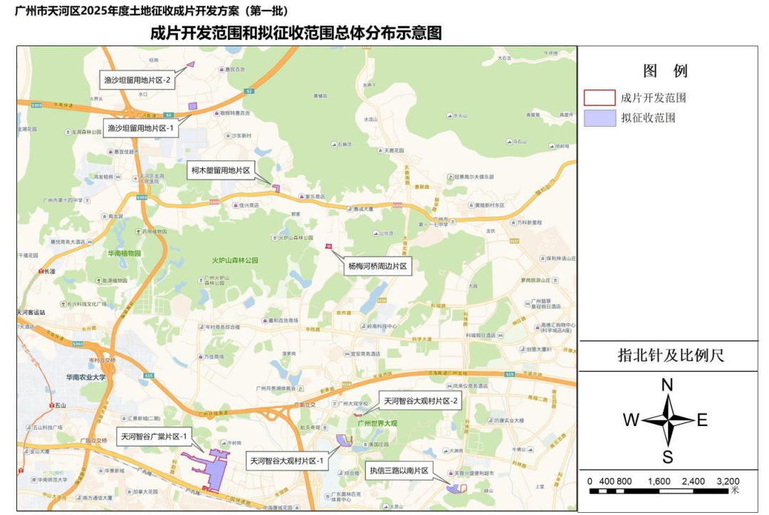 广州市天河区2025年度土地征收成片开发方案(第一批)成片开发范围和拟征收范围总体分布示意图(图片由广州市规划和自然资源局天河区分局提供)