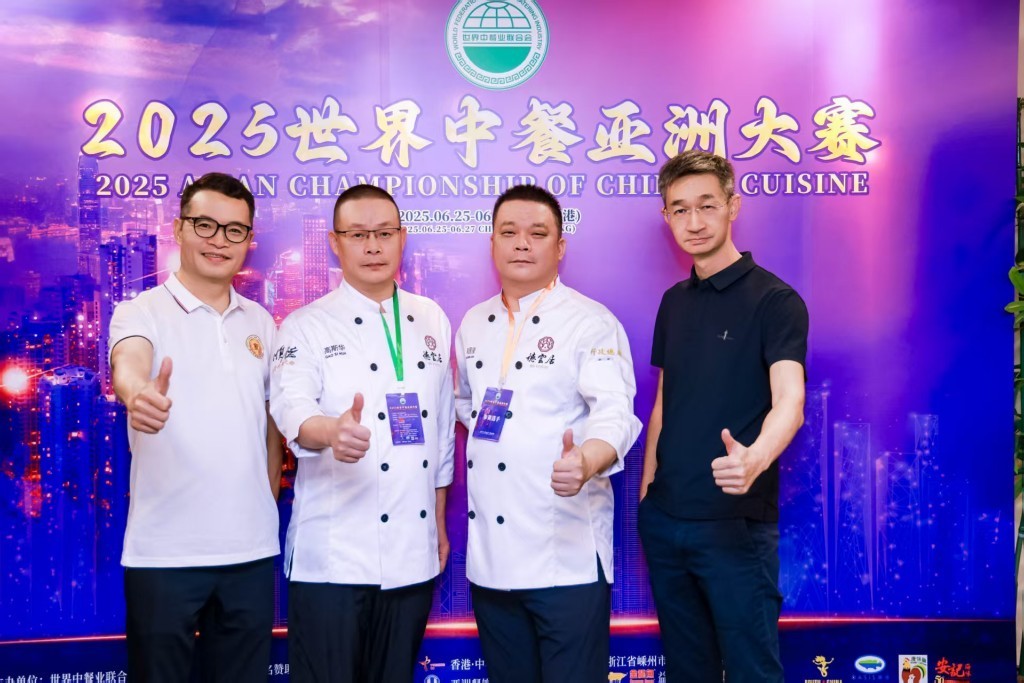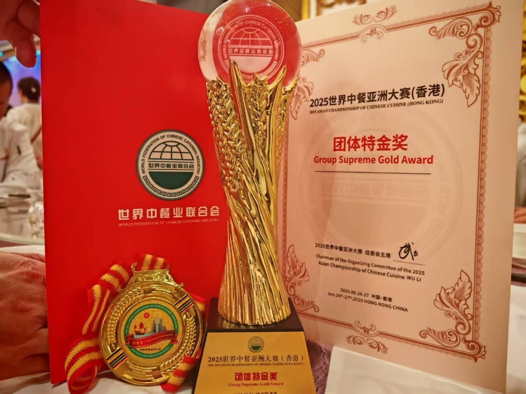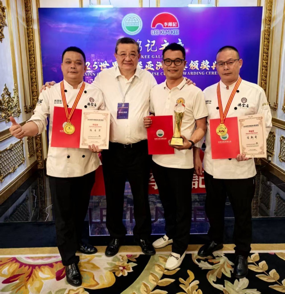 6月26日,2025世界中餐亚洲大赛在香港中华厨艺学院举行。来自世界美食之都顺德的德云居大厨高国坚、高斯华,凭借头抽豉油鸡、榄豉百花荔枝蒸斑鱼、藤椒鲍鱼拌时蔬三道匠心之作,在“90分钟双热单冷”极限挑战中脱颖而出,斩获赛事最高荣誉——特金奖及团体特金奖。