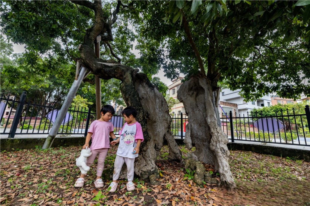 活动中,市民跟随“白云古树精灵”探访村内一株有320年树龄的古荔枝树。这棵历经沧桑的古树,据传种植于康熙年间,其树干曾被雷劈一分为二,只剩树皮相连。去年,在“树木医生”为其量身定制的“一树一策”复壮方案下,通过修复树洞、安装支撑架等措施,荔枝古树再现生机,如今枝繁叶茂,硕果累累,成了村里名副其实的“活荔”代言人。