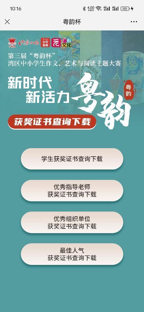 选择对应奖项按钮,输入相关信息查询证书编号,复制证书编号,前往广州市教育局电子证书系统进行证书下载。