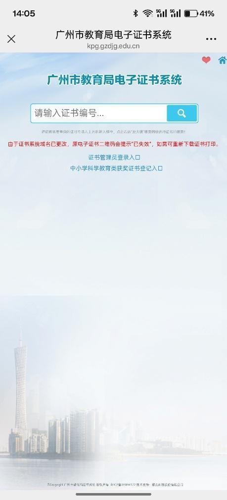 进入广州市教育局电子证书系统,填入证书编号,查询并下载电子获奖证书。