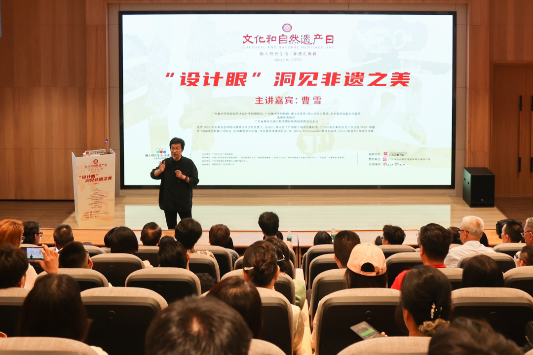 6月26日,为探索传统文化在当代的创新表达,一场聚焦美学创意设计深度对话的专题讲座在广州荔湾区1906科技园阶梯路演厅举行。作为2025年“文化和自然遗产日”广州非遗宣传展示系列活动的重要组成部分,本次讲座特邀中国设计界领军人物、北京冬奥会吉祥物“冰墩墩”设计团队总负责人、广州美术学院教授曹雪,以“设计眼”为主题,为广大文化从业者带来了一场思想盛宴。