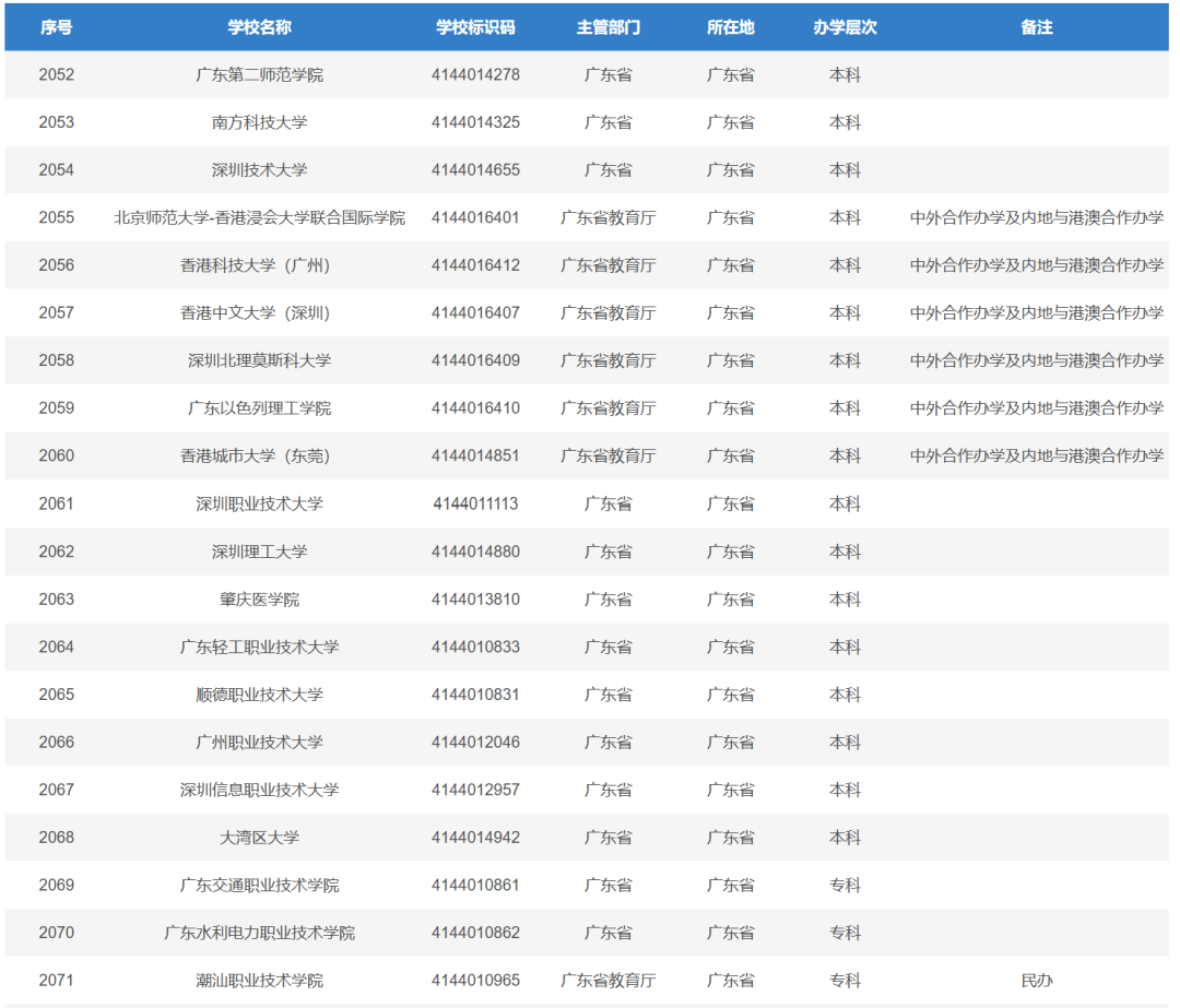 6月27日,教育部发布全国高等学校名单(截至2025年6月20日,未包含港澳台地区高等学校)。名单显示,广东共有166所普通高等高校,数量仅次于江苏、山东、河南。