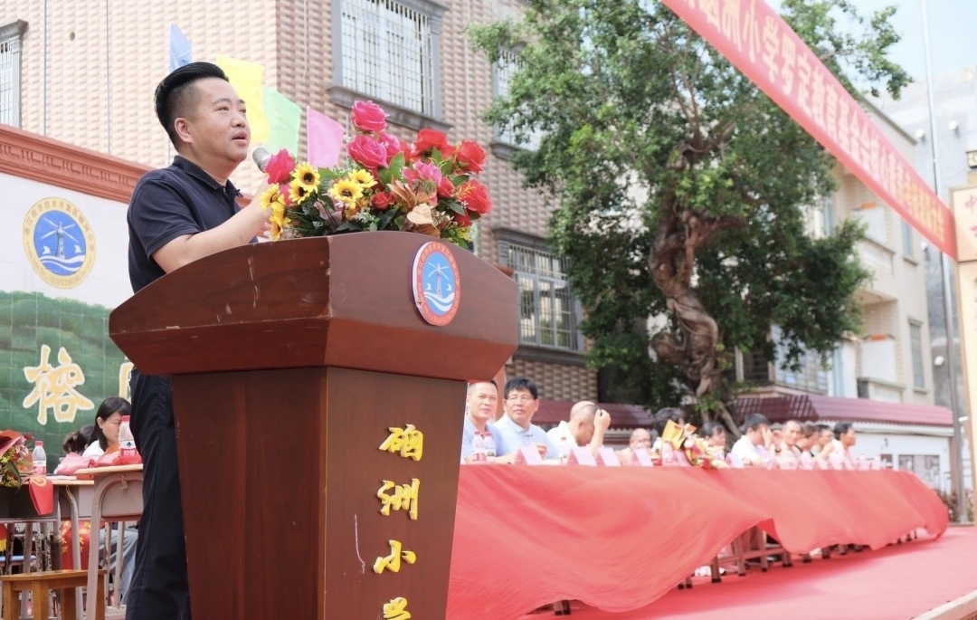 近三年来,他向硇洲各中小学捐赠的款项、实物总计超过550万元。他连续10年出资奖教奖学,捐建户外高杆灯,让学生告别了“打着手电下晚自习”的日子;建成四位硇洲籍水师将领人像,开展爱国主义教育;捐建的“侨兴苑”,不仅美化了校园环境,更在学生心中种下了中华优秀传统文化的种子。