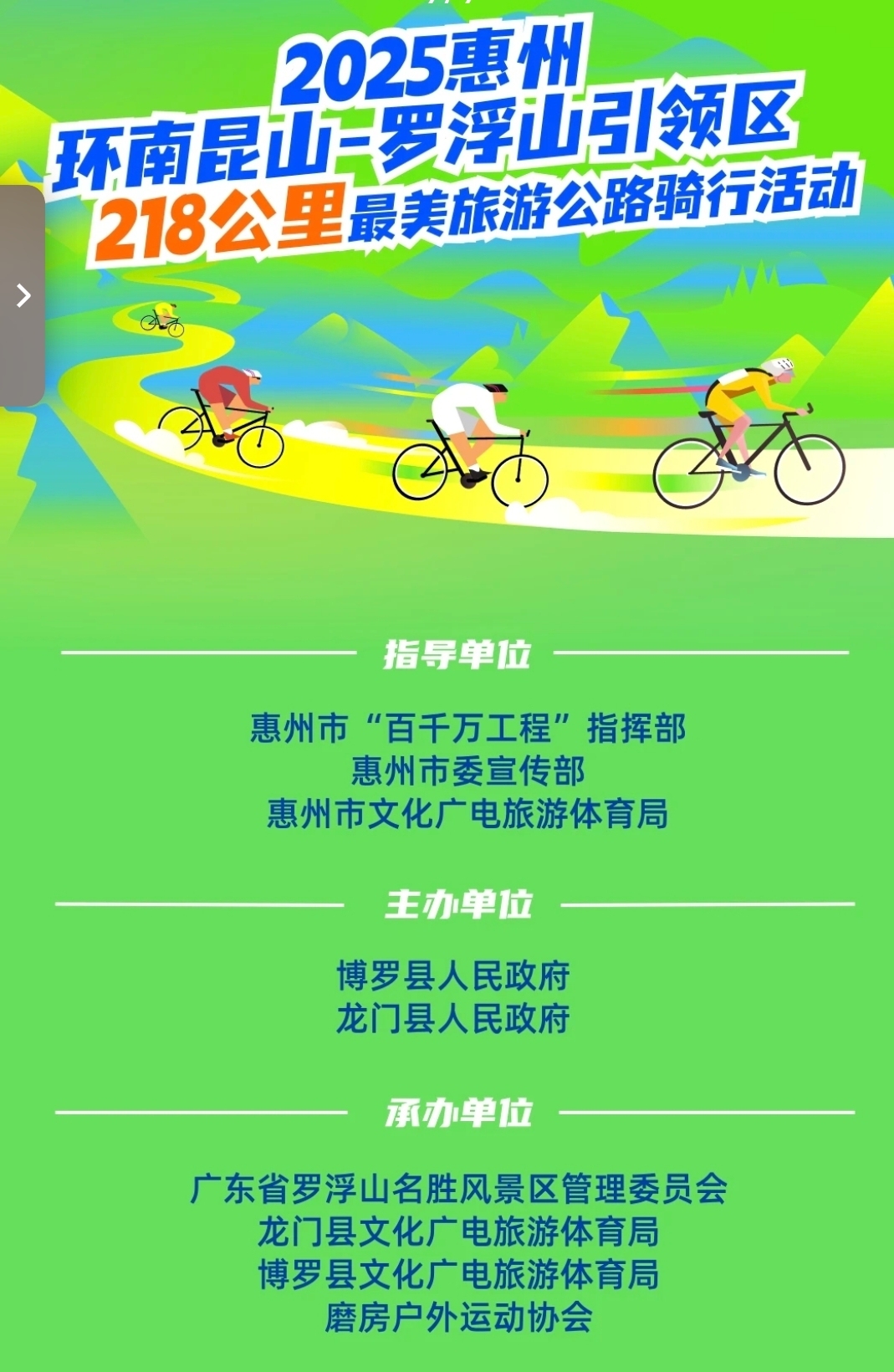 迎接十五运会!2025环南昆山—罗浮山引领区最美旅游公路骑行活动将于29日举行,来自全球的自行车骑行爱好者将汇聚“两山”,感受长达218公里绝美公路的独特魅力。本次活动由博罗、龙门县政府联合主办。
