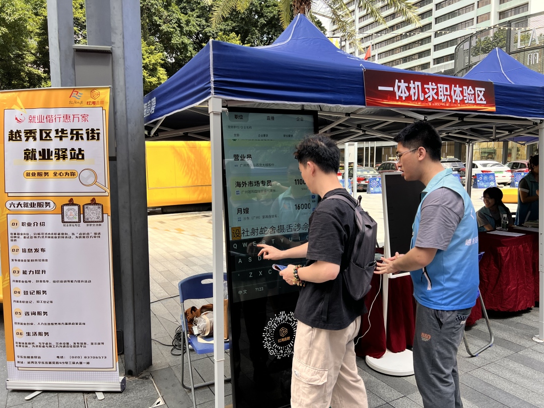 6月27日上午,由广州市越秀区人力资源和社会保障局指导、越秀区华乐街道主办的“华乐聚贤才,助力百千万”零距离现场招聘会在环市东广场顺利举办。活动通过“线上+线下”同步进行的方式,结合智能化服务创新,搭建起企业与求职者的高效对接平台,吸引了217人次到场咨询,数十人通过线上线下渠道投递简历,其中更有部分求职者与用人单位现场达成就业意向,为区域就业服务注入新活力。