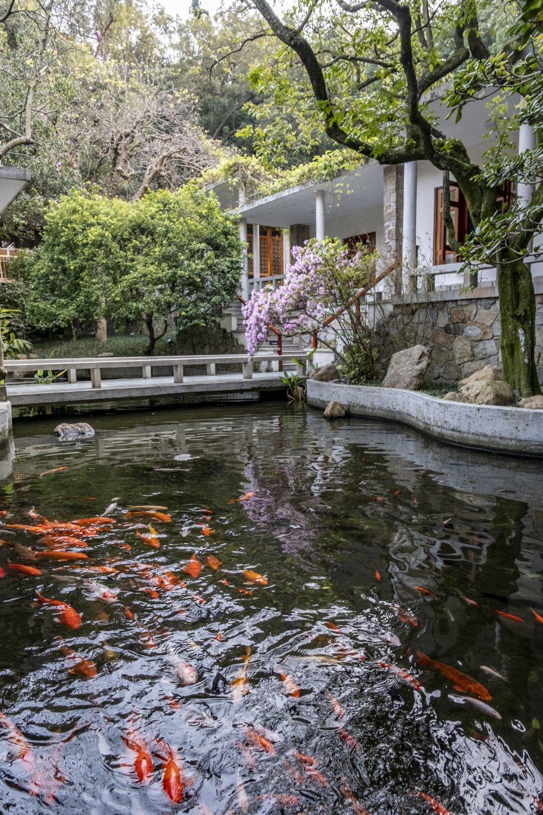 山庄旅舍三面环山,东临深谷,一条名叫“月溪”的山溪顺着地势,蜿蜒穿过。岭南建筑和园林大师莫伯治及其设计团队依据地势,在狭长的溪谷地形塑造了一系列的串列式庭园组合,打造出丰富的建筑群和多层次的庭园。