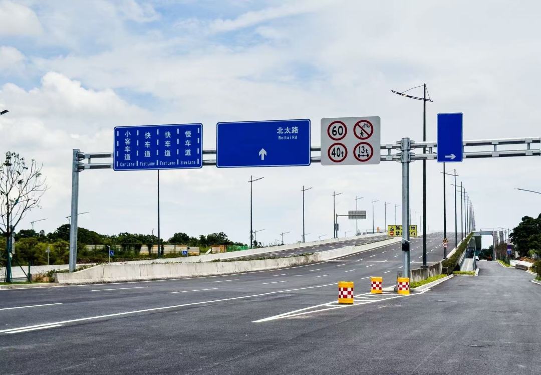 此次通车的路段,南起鸦岗大道,北至北太路,全长约7.7公里。道路按城市主干路标准建设,设计时速60公里,双向10车道,包含跨流溪河特大桥一座、跨滨河路中桥一座、跨涌桥4座。