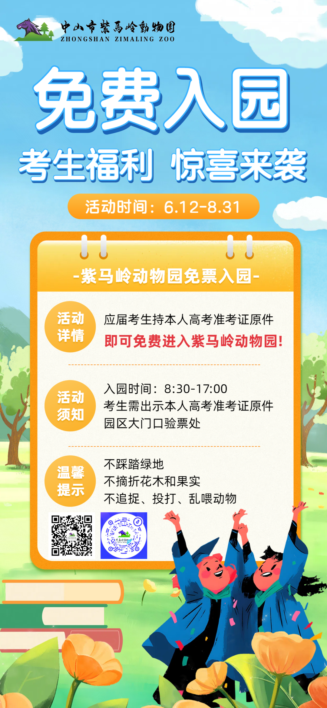 近日,中山市紫马岭动物园发布暑期优惠活动,对2025年高考生免费开放。