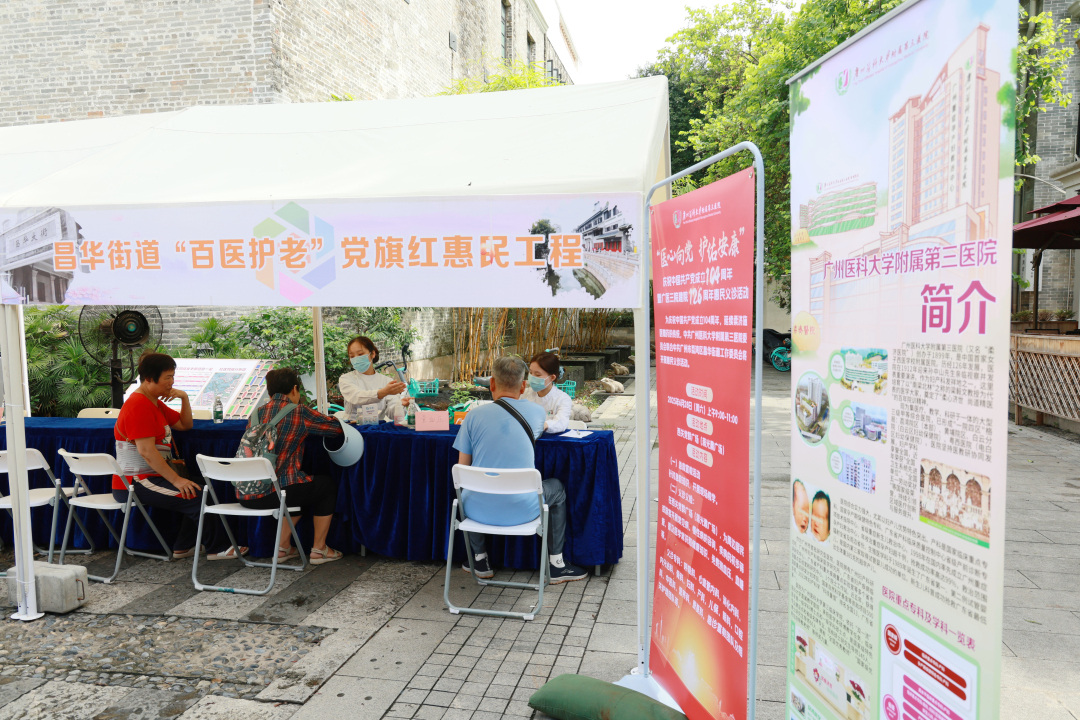 为迎接中国共产党成立104周年的到来,深入践行全心全意为人民服务的根本宗旨,推动“百医护老”党旗红惠民工程常态长效,6月28日,广州荔湾区昌华街道以党建为纽带,联合结对共建单位广医三院党委,在西关党群广场开展庆祝中国共产党成立104周年暨“百医护老”党旗红惠民义诊活动。