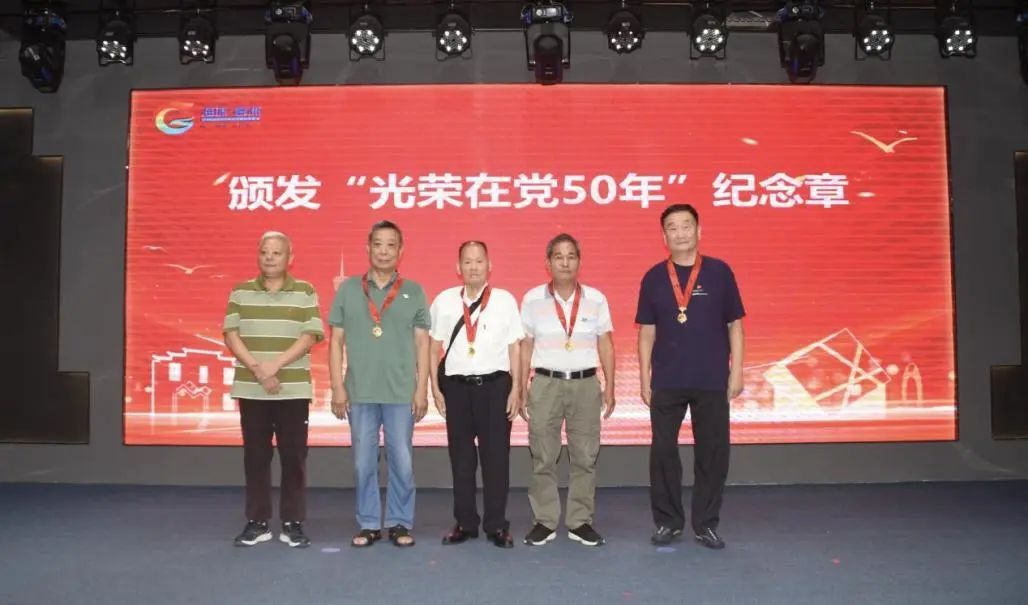 活动现场举行了庄严而温馨的“光荣在党50年”纪念章颁发仪式,为党龄达到50年的老党员们颁发纪念章,向他们致以崇高的敬意。