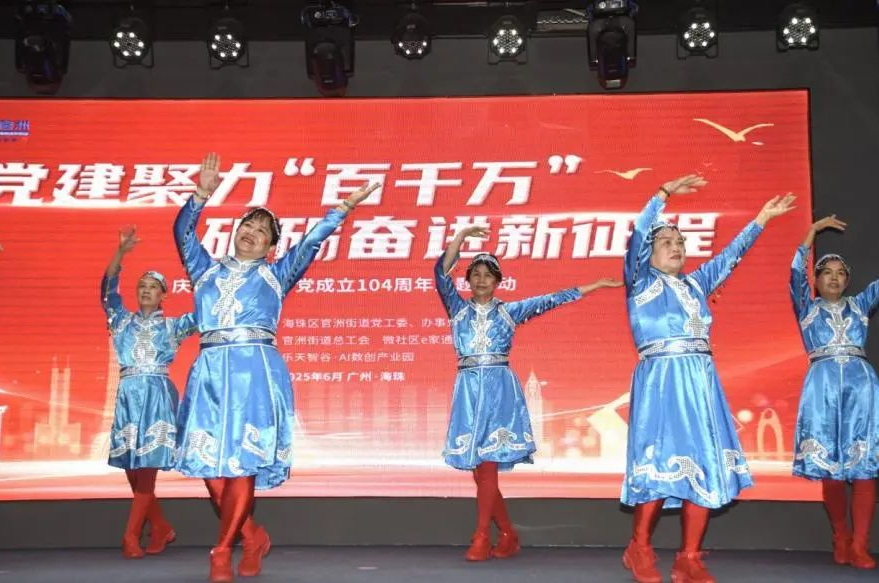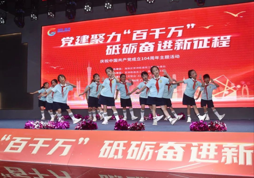 6月27日,官洲街道在乐天智谷路演中心举办“党建聚力‘百千万’,砥砺奋进新征程”庆祝中国共产党成立104周年主题活动。此次活动形式多样、内容丰富,涵盖了知识竞赛、最美官洲摄影大赛、“七一”文艺汇演、书法作品征集等系列活动。海珠区总工会常务副主席、官洲街道相关领导出席了本次活动,同时吸引了众多党员代表、工会会员代表、学生及群众踊跃参与,现场气氛热烈。