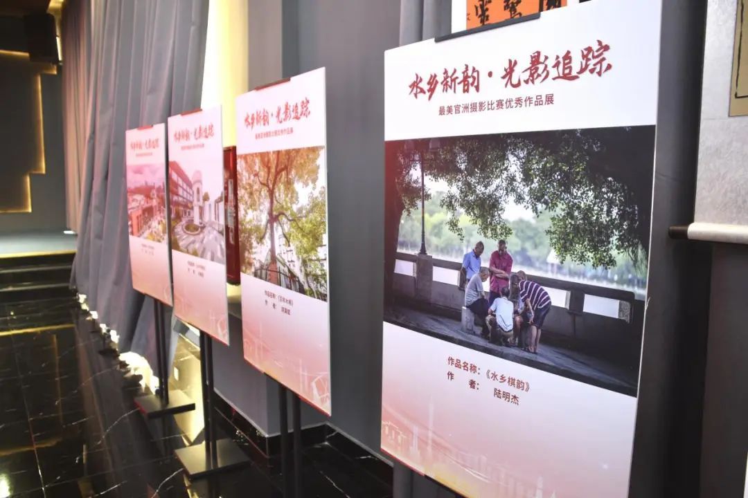 活动当天,“水乡新韵·光影寻踪”——最美官洲摄影大赛颁奖仪式如期举行。活动共收到近200份摄影作品和20幅书法作品,参赛者用镜头捕捉到官洲的美丽瞬间,记录了水乡新韵。现场展板展示的优秀作品,观众们纷纷驻足观看。其中,参赛选手陆明杰的《水乡棋韵》凭借独特的视角和深刻的内涵,荣获一等奖。