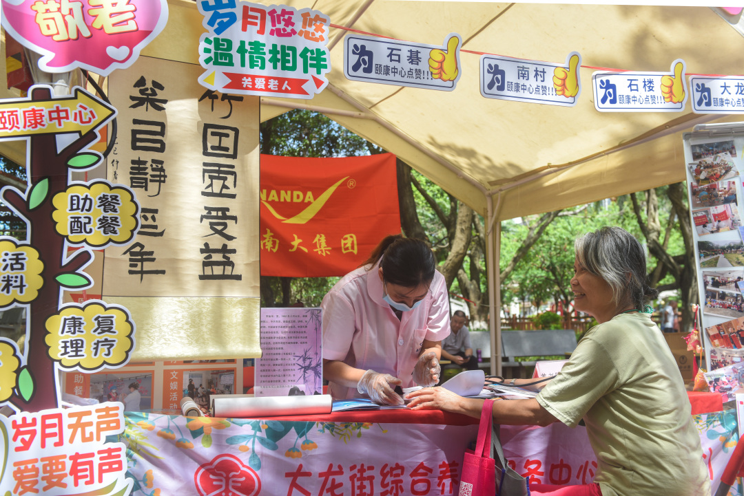 记者在现场看到,多家养老机构与颐康中心在集市开展政策宣讲与服务推介。番禺区综合养老服务中心联动10余家颐康中心,重点向居民普及平安通、居家适老化改造、居家上门服务及家庭养老床位等养老政策。广州南大发展科技有限公司通过特色展板展示其运营的石楼、大龙、南村、石基四个颐康中心服务,涵盖助餐配餐、生活照料、康复理疗及文体活动,吸引众多长者咨询。广州松明尚苑颐养院、荔园养护园、招商高泽利等机构提供免费血压检测,并结合机构特色面向活力老人、受护理老人等群体精准推介服务。祈福护老公寓联合祈福医院,现场派发免费肛肠科及眼底检查券。智能康养产品区同样人气高涨,广州奥佳华携多款适老按摩产品亮相,延续了此前荔湾集市的良好反响。