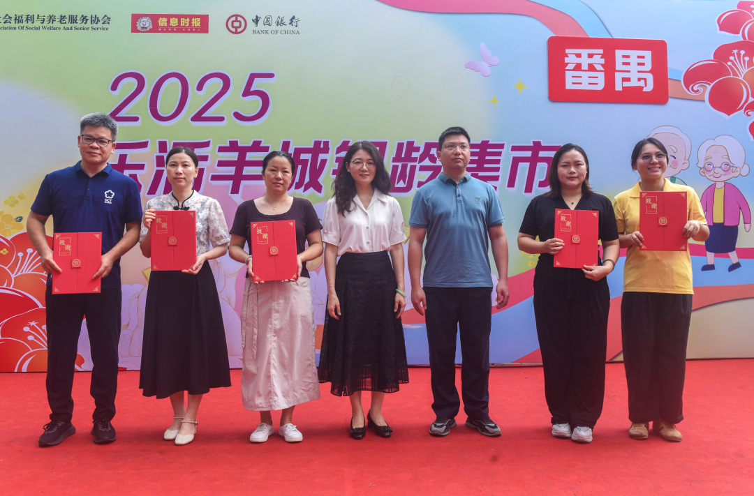 “乐活羊城”银龄集市是落实广州市促进服务消费高质量发展的重要举措,而“慈善+养老”的融合则为活动注入了独特的温暖内核。现场,广州松明尚苑颐养院、康辉国际旅行社(万丰路门市部)、广州医沅疤痕修复中心、广州市荔园养护服务有限公司、广州好佰年口腔医院管理有限公司等5个商家摊位前挂上了“慈善商家”的牌匾,并获番禺区民政部门颁发感谢书。