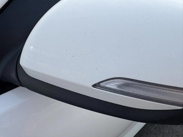 还车时,车后视镜细看有磨损,“针尖大”。受访者供图