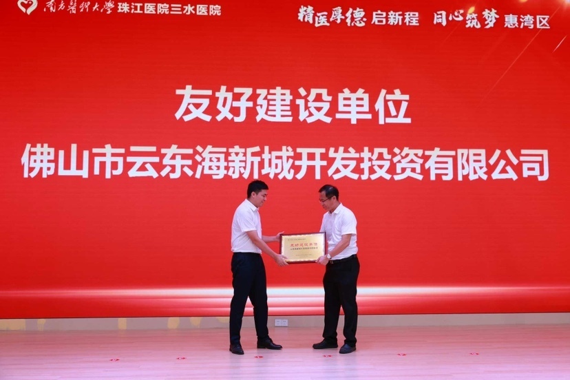 向佛山市云东海新城开发投资有限公司颁发牌匾。