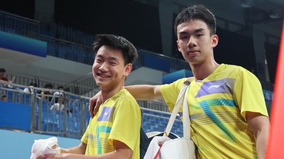 刘峻荣(右)与同样来自广州的邓宇翔参加今年全国青年羽毛球锦标赛
